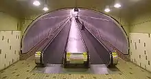 Il est souvent alterné avec les escaliers mécaniques voire ascenseurs, sur différents niveaux.