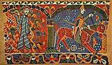 L'art de la tapisserie existe depuis l'Antiquité, en particulier la tapisserie sur métier[12]. Le rôle décoratif de la tapisserie s'affirme, tant chez les peuples nomades pour décorer leurs tentes, que dans les nations sédentaires pour aménager et rehausser l'éclat de leurs temples et de leurs palais.