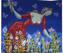La tapisserie est un tissu fabriqué sur un métier à tisser ou bien à la main, dont le tissage représente des motifs ornementaux[1]. Le tissage se compose de deux ensembles de fils entrelacés, ceux à la verticale, les fils de chaîne, et ceux à l'horizontale, les fils de trame[1]. Les fils de chaîne sont mis en place sous tension sur un métier, et le fil de trame est transmis par un mouvement mécanique de va-et-vient sur tout ou partie de l'ouvrage. Souvent la tapisserie est une réalisation textile décorative d'ameublement, se classant dans les arts décoratifs. La tenture murale d'une pièce peut être constituée d'une seule ou d'un ensemble de tapisseries[2].