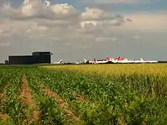 - L'aérodrome de Tarbes-Laloubère[34] (code OACI : LFDT). Situé au sud, face aux Pyrénées, à deux kilomètres du centre de Tarbes, il est réservé à la pratique d’activités de loisirs et de tourisme. L'aérodrome accueille plusieurs structures, notamment : l’aéro-club de Bigorre[35], l'association d'aéromodélisme Tarbes-Bigorre, l'association vélivole de Tarbes (vol à voile)[36], le Centre école de parachutisme de la Bigorre[37], l'Association tarbaise de constructeurs amateurs d'aéronefs.