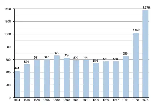 - Source: DGS, 1831 à 1970=recensements population, 1976= habitants au 31 décembre