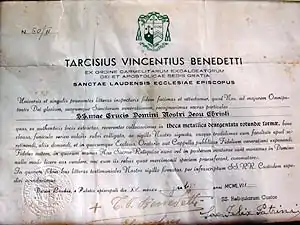 Tarcisio Vincenzo Benedetti, OCD (né le à Treviolo, dans la province de Bergame, en Lombardie et mort le à Lodi) était un religieux et évêque catholique italien, évêque du diocèse de Lodi jusqu'en 1972.