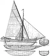 La tartane à deux mâts bâtie à Selitsky avait une longueur de 65 pieds (19,81 m), une largeur de 17 pieds (5,18 m), et, à juger par l'enregistrement de Pierre Pikart, un gréement de deux mâts avec des voiles latines et sept canons par bande[7].