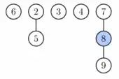 où t est le nombre d'arbres dans le tas de Fibonacci, et m est le nombre de nœuds marqués. Un nœud est marqué si au moins un de ses fils a été coupé depuis que ce nœud a été fait fils d'un autre nœud (aucune racine n'est marquée).