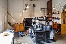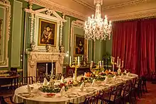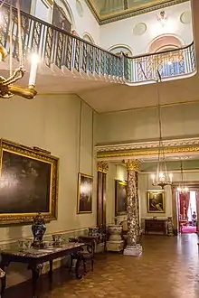 Au centre du bâtiment se trouvent les escaliers principaux. Ceux-ci s'élèvent de la salle d'escalier qui est éclairée par une lucarne ovale en forme de dôme. À l'est de cette salle, à travers deux paires de colonnes de marbre, se trouve la salle de la coupole. Sur son sol se trouve un tapis Axminster au design inhabituel montrant des objets célestes et les signes du zodiaque pour les mois d'hiver. Les salles contiennent des meubles anglais de style Adam et des objets en céramique orientale [6].