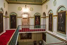 Sur les murs du palier supérieur se trouvent dix portraits en pied connus sous le nom de The Cheshire Gentlemen . Ils représentent dix des principaux gentlemen du comté qui se sont réunis à Ashley Hall pour décider de soutenir le roi George Ier ou Jacques François Stuart lors du soulèvement jacobite de 1715. Ils décident de soutenir le roi, ce qui sauve probablement leurs vies et leurs biens [8].