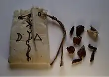 Mais l'usage le plus répandu au XVIIIe siècle pour soigner les dents est celui de l'amulette contenant une mâchoire, des dents ou des pattes de taupe. Ainsi, à Marseille, on met au cou de l'enfant un collier composé de pattes de taupes[34]. En Provence, c'est un escudet de pauto de darboun qui est en usage, c'est-à-dire un morceau de drap rouge aux quatre coins duquel sont cousues les quatre pattes d'une taupe[35]. En Lorraine, on préfère prendre une taupe vivante, lui couper les pattes et le museau et mettre le tout dans un sachet que l'on place sur la poitrine de l'enfant[36]. En Loir-et-Cher, pour être de qualité, la taupe doit être étouffée de la main gauche et ne pas encore avoir eu de petits[34]. En Alsace, les pères destinent les pattes de taupes mâles aux garçons alors que les pattes des taupes femelles plutôt aux filles[37]. D'autres talismans sont en vigueur comme des dents arrachées à une taupe mâle et vivante ou les ongles des pattes de devant toujours arrachés à une taupe vivante. Plus le sachet sent mauvais, plus le remède est censé être efficace et la guérison rapide. Le choix de la taupe comme thérapeutique lors de l'éruption des dents de lait s'explique par son passage sous terre, que l'on assimile à celui des dents à travers les gencives. C'est aussi pourquoi les pattes qui leur servent à creuser sont le plus souvent recommandées dans les remèdes[38].