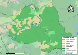 L'occupation des sols de la commune, telle qu'elle ressort de la base de données européenne d’occupation biophysique des sols Corine Land Cover (CLC), est marquée par l'importance des forêts et milieux semi-naturels (80,8 % en 2018), une proportion sensiblement équivalente à celle de 1990 (80,7 %). La répartition détaillée en 2018 est la suivante : forêts (78,3 %), zones agricoles hétérogènes (16,7 %), prairies (2,5 %), milieux à végétation arbustive et/ou herbacée (2,5 %)[18].
