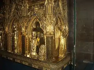 Sur les faces latérales sont représentées diverses scènes de la vie du saint selon la légende.