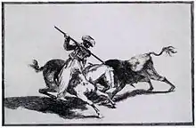 En France, de l'autre côté des Pyrénées, la tauromachie était restée aux mains du peuple. C'était essentiellement une tauromachie à pied qui s'est développée par la suite sous plusieurs formes de jeux, essentiellement athlétiques, à partir du XVIIIe siècle[27].