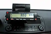 Le tarif est défini comme un « arrangement » (taxi en grec) en fonction d'une distance parcourue d'où la création de taximètre, qui remplace le compteur. Le compteur kilométrique pour taxis est inventé à l'époque des fiacres par le franco-russe Stéphane Drzewiecki, qu'il lance à Paris en 1867 [11], mais le taximètre moderne est inventé à Berlin en 1891 par Friedrich Wilhelm Gustav Bruhn (en)[12]. Le terme actuel « taxi » est apparu vers 1900 par apocope de taximètre ; les véhicules équipés de ces compteurs étaient alors appelés « fiacres à taximètre ».