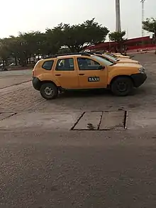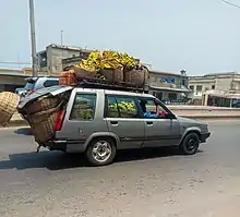 - Taxis, reconnaissables à leur plaque d'immatriculation orange, ou à leur carrosserie peinte en jaune et vert à Cotonou et qui peuvent transporter entre 5 et 9 personnes ;