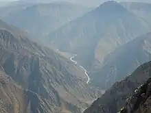 Le Tchatkal se jetant dans le réservoir du Tcharvak | |