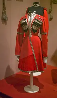 À partir du XIXe siècle, la tcherkeska fait partie de l'uniforme des troupes de cavalerie russes dans les guerres du Caucase, en particulier des cosaques du Kouban et du Terek. Elle est complétée par la bourka, la papakha ou koubanka et le bachlyk.