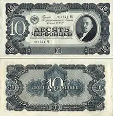 En 1923, le gouvernement soviétique frappe en petite quantité une pièce en or de 10 roubles. C'est la seule pièce en or soviétique qui ait eu un cours légal. Des refrappes sont faites à partir de 1975 mais uniquement à but d'investissement pour l'étranger : ce n'est qu'à partir de 1996 que le marché intérieur de l'or est ouvert aux citoyens russes[3].