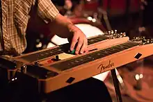 - la main positionnée de telle sorte que seuls le pouce et l'index sont utilisés, les trois autres doigts reposant sur la table. Technique de jeu créée par « Merle Travis ».