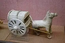 Les archéologues modernes ont découvert des outils agricoles en fer à travers toute la Chine, de la Mongolie-Intérieure au Nord au Yunnan au Sud. La bêche, la pelle, la pioche et la charrue sont utilisées pour le labour, la houe pour le désherbage, le râteau pour dé-serrer la terre et la faucille pour la récolte[34]. Selon leur taille, les charrues des Han sont tirées par un ou deux bœufs[35]. Ces animaux sont également utilisés pour tirer les semoirs en fer (inventés au IIe siècle av. J.-C. dans la Chine Han), qui permettent aux fermiers de planter des graines en suivant des lignes précises plutôt que de les épandre à la main[36],[37],[38]. Alors que les œuvres d'art postérieures aux Han montrent l'utilisation de herses pour casser les gros morceaux de terre après le labour, il est probable que leur apparition remonte à l'époque des Han orientaux[39]. Les travaux d'irrigation pour l'agriculture sont constitués de roues à eau, d'étangs et remblais artificiels, de barrages, de canaux et de sluices[40],[41].