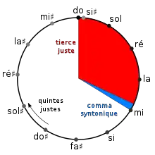 Les notes de la gamme de Pythagore sont obtenues en empilant des quintes pures (de rapport 3/2) : do - sol, sol - ré, ré - la et la - mi, etc. Mais, avec cette construction, la tierce obtenue, do - mi , a un rapport de 81/64, c'est la tierce pythagoricienne. Elle diffère de la tierce pure de rapport 5/4 = 80/64. Afin d'obtenir une tierce pure, il faut donc réduire légèrement les quintes.