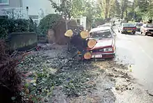 - 15 millions d'arbres cassés ou arrachés incluant six des sept fameux chênes de Sevenoaks et plusieurs à Chanctonbury Ring ;
