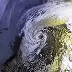 Un événement plus rare est la conversion d'une tempête extratropicale importante en un système tropical. Comme la plupart des tempêtes majeures, celle de l'Halloween 1991 s'est occluse, c'est-à-dire que le front froid a rattrapé le front chaud et l'air doux a été poussé en altitude près de la dépression. Le centre du système ralentit alors et la température en surface près de la dépression est assez uniforme. Le cisaillement vertical des vents est faible également. Si le centre se maintient sur une zone d'eau chaude, la convection peut se développer, réchauffer toute la couche d'air et ainsi devenir un système à cœur chaud. Cela s'est produit au sud de Terre-neuve sur les eaux du Gulf Stream dans ce cas[6].