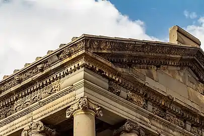 - le temple et les thermes romains avec un sol en mosaïque qui a été préservé sur une petite surface avec une inscription en grec[5],