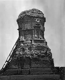 La majorité du toit est manquante. Avec les données des parties restantes, les experts ont émis l'hypothèse que le toit était couronné d'une Stupa décorée à l'aide de motifs floraux.