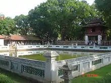 Au-delà, s'ouvre une ouverture sous le pavillon de la Constellation des Lettres, construit en 1805 et symbole officiel aujourd'hui de la ville de Hanoï[9] et donnant accès à la troisième cour qui possède un grand bassin rectangulaire appelé le lac de la clarté céleste, ainsi que quatre-vingt-deux stèles de pierre (trente-quatre autres stèles ayant disparu). Y sont inscrits les noms, les lieux de naissance et les résultats d'examen de 1 307 diplômés de l'académie confucéenne sous les dynasties Lê et Mạc, entre 1442 et 1779[10].
