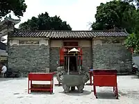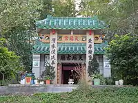 Temple de Tin Hau de Tai Tseng Wai (大井圍天后古廟, 大井天后古廟) Construit en 1688[68]. Restauré en 1981. Le temple est partagé par les trois villages de Tai Tseng Wai (en), Ng Uk Tsuen et Shing Uk Tsuen (en)[69]. |