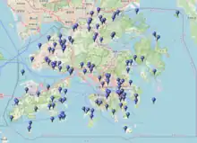 | Nim Shue Wan (en), Île de Lantau 22° 17′ 27″ N, 114° 01′ 08″ E |