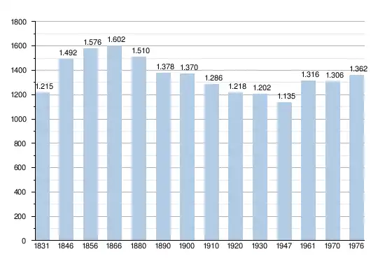 - Sources:INS, Rem:1831 jusqu'en 1970=recensements, 1976= nombre d'habitants au 31 décembre