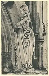 Francis Salet met en rapport le dessin des habits avec ceux des statues du tombeau de Philibert le Beau de l'église Saint-Nicolas-de-Tolentin du monastère de Brou.