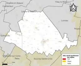 Le retrait-gonflement des sols argileux est susceptible d'engendrer des dommages importants aux bâtiments en cas d’alternance de périodes de sécheresse et de pluie. 0,2 % de la superficie communale est en aléa moyen ou fort (52,8 % au niveau départemental et 48,5 % au niveau national). Sur les 436 bâtiments dénombrés sur la commune en 2019, 0 sont en aléa moyen ou fort, soit 0 %, à comparer aux 70 % au niveau départemental et 54 % au niveau national. Une cartographie de l'exposition du territoire national au retrait gonflement des sols argileux est disponible sur le site du BRGM[18],[Carte 2].