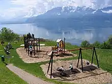 En France, il existe une norme Afnor (NF EN 1176-1 datant d') pour les « équipements et sols d'aires de jeux » dont une partie concerne les exigences de sécurité et méthodes d'essai générales[3]. D'autres normes portent par exemple sur les sols synthétiques absorbant les impacts[4]. D'autres encore portent sur les balançoires, toboggans, jeux sur ressort, etc.