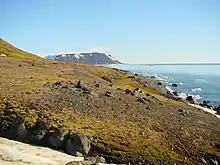 La végétation est limitée à 5 % de la superficie totale et consiste principalement en plusieurs espèces de mousses et de lichens. Pendant l'été, des fleurs arctiques éclosent, comme le pavot arctique, la saxifrage, et la renoncule[3]. Bien que limitée, la végétation comprend 60 espèces de plantes à fleurs (dont 16 espèces d'herbes) et 50 espèces de mousses (dont des algues terrestres).