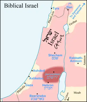 - Judée : Avec la division de la terre d'Israël en deux royaumes, le nom Israël ne fait plus que référence au royaume d'Éphraïm. À l'époque perse, la terre d'Israël est connue comme l'État de Judée et lors de la période hasmonéenne la terre est connue comme Terre de Juda et ne comprend plus la Galilée.