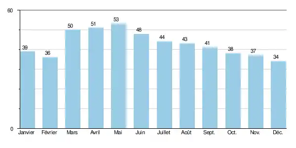 Précipitations (mm) 39 36 50 51 53 48 44 43 41 38 37 34 514