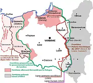 La frontière d'après-guerre entre l'Allemagne et la Pologne (la ligne Oder-Neisse) a été reconnue par l'Allemagne de l'Est en 1950 et par l'Allemagne de l'Ouest en 1970, ce qui a été confirmé par l'Allemagne réunifiée dans le traité frontalier germano-polonais de 1990.