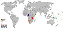 | Nouvelle-Guinée allemande | En 1975, les deux entités ont été légalement unifiées et ont obtenu l'indépendance en tant que Papouasie-Nouvelle-Guinée. La moitié occidentale de l'île, autrefois néerlandaise et aujourd'hui indonésienne, n'a jamais fait partie des deux territoires. | ||||