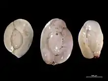 La forme et la composition des tests est le moyen principal d'identifier et de classer les foraminifères. La plupart secrète des tests calcaires, composés de carbonate de calcium[16]. Les tests calcaires peuvent être composés soit d'aragonite soit de calcite selon les espèces. Parmi celles à test de calcite, le test peut contenir une substitution plus ou moins importante par du magnésium[17]. Le test contient une matrice organique, qui peut parfois être recouvrée d'échantillons fossiles[17].