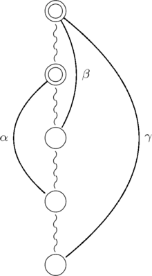 Quand on le graphe G dans le plan, deux arêtes du coarbre sont dites similaires si elles figurent du même côté dans T, elles sont opposées dans le cas contraire. Dans les figures suivantes, les cercles simples représentent des sommets, les cercles doubles représentent des sous-arbres, les segments torsadés représentent des chemins dans l'arbre T, et les arcs courbes représentent des arêtes du coarbre. La racine de chaque arbre figure au bas de la figure. Dans la Figure 1, les arêtes étiquetés et sont similaires pour T, ce qui signifie qu'aux extrémités les plus proches de la racine de l'arbre, elles seront toutes les deux du même côté de l'arbre dans tout dessin dans le plan. Dans les Figures 2 et 3, les arêtes avec les mêmes étiquettes et sont opposées pour T, ce qui signifie qu'elles se trouveront sur des côtés opposés de l'arbre dans chaque dessin dans le plan.