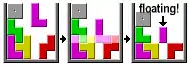 Comme dans la plupart des versions de Tetris, les blocs ne tombent pas dans les trous lorsque des lignes disparaissent (voir l’image intitulée « Gravité du Tetris »).