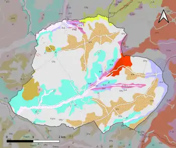 L'occupation des sols de la commune, telle qu'elle ressort de la base de données européenne d’occupation biophysique des sols Corine Land Cover (CLC), est marquée par l'importance des forêts et milieux semi-naturels (50,3 % en 2018), une proportion identique à celle de 1990 (49,8 %). La répartition détaillée en 2018 est la suivante : forêts (47,7 %), zones agricoles hétérogènes (27,1 %), prairies (17,8 %), terres arables (4,7 %), milieux à végétation arbustive et/ou herbacée (2,6 %), zones urbanisées (0,1 %)[31]. L'évolution de l’occupation des sols de la commune et de ses infrastructures peut être observée sur les différentes représentations cartographiques du territoire : la carte de Cassini (XVIIIe siècle), la carte d'état-major (1820-1866) et les cartes ou photos aériennes de l'IGN pour la période actuelle (1950 à aujourd'hui)[Carte 3].