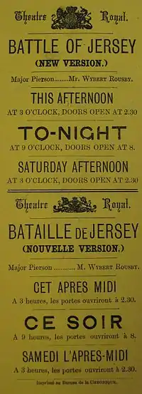 Les premières pièces interprétées en langue française par des comédiens amateurs jersiais furent Alzire ou les Américains en 1795 suivi de Mérope de Voltaire en 1796.