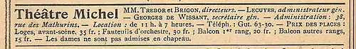- Le théâtre Michel sur le site des Théâtres parisiens associés.
