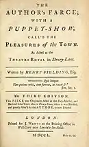 The Author's Farce and the Pleasures of the Town (« La Farce de l'auteur, ou Les Plaisirs de la ville »), la cinquième pièce, commença sa carrière le au petit théâtre du Haymarket et obtient un beau succès avec plus de quarante représentations. Fielding y commente entre autres le rejet de ses œuvres par le théâtre de Drury Lane. Le troisième acte est un spectacle de marionnettes moquant certaines des pratiques du théâtre et de la communauté littéraire. Reprise dans sa version originale plusieurs fois[10], puis avec un théâtre de marionnettes[11], l'action tourne autour de Harry Luckless, auteur qui, pour promouvoir sa carrière littéraire, poursuit les femmes de ses assiduités, évite sa propriétaire et finit par incorporer un autre spectacle au spectacle. C'est à cette occasion que Fielding adopte son persona Scriblerus Secundus[12].