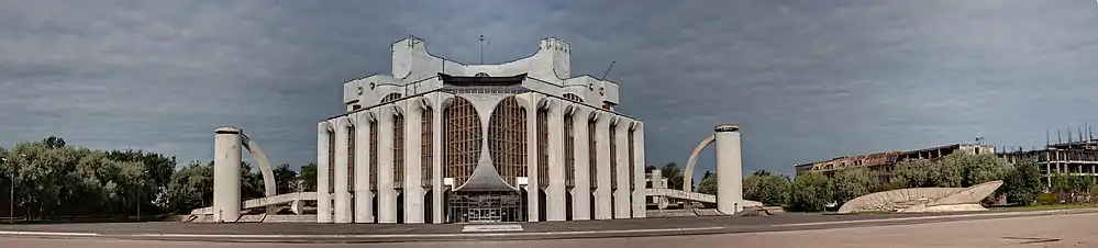 En 1987 est inauguré le nouveau bâtiment du théâtre construit sous la direction de l'architecte Somov; le musicien A. S. Makarevitch y apporte sa touche pour la forme des fenêtres. Une partie du complexe a été démontée: il s'agit d'une colonne monumentale de 42 mètres de haut. Appelée localement "colonne Makarevitch" ou "Colonne des suicidés" à cause du nombre de suicides qui y ont eu lieu, les autorités municipales décident en 2007 de démonter la colonne dont des parties de béton menaçaient de se détacher, ce qui est fait en 2009.