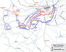 Les forces de l'Union s'avancèrent sur Yorktown, mais McClellan les arrêta lorsqu'il se rendit compte que les fortifications confédérées barraient la péninsule au lieu d'être limitées à Yorktown, comme il avait imaginé. Après avoir accumulé, pendant un mois environ, le matériel nécessaire à un siège, creusé des tranchées, disposé ses batteries et suscité quelques escarmouches pour tester les défenses, le siège de Yorktown était prêt à débuter. Mais Johnston, jugeant ses défenses trop fragiles pour soutenir un assaut de l'Union, retira discrètement ses troupes dans la nuit du 3 au . Pendant la campagne, l'Union s'empara également d'Hampton Roads et occupa Norfolk. Comme les troupes fédérales poursuivaient les forces confédérées en remontant la péninsule vers Richmond et le nord-ouest, une première bataille eut lieu à Fort Magruder et dans ses alentours, à 1,5 km à l'est de Williamsburg, l'ancienne capitale coloniale[18].