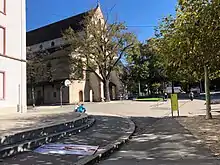 Le Petit-Bâle vers 1795 ; à droite, l’église Saint-Théodore. Gravure de Christian von Mechel (détail)