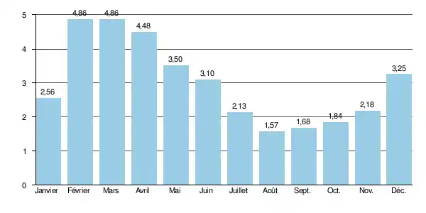 Le débit journalier maximal enregistré à Sainte-Lizaigne a été de 32,3 m3/s le .