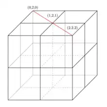 Soient n = 3, H = 2 et c = 2. L'hypercube , dans ce cas, est simplement de le plateau du morpion usuel, avec ses neuf positions :